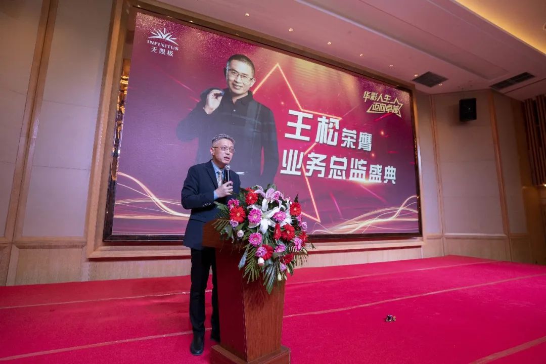 他说:“王松先生和许多伙伴一样,因为公司产品了解了无限极,因为理性分析发现事业魅力,毅然选择投身无限极事业,读懂公司,相信公司,紧跟公司步伐,因此取得了骄人的成绩,王松先生今天的成功,就是你们的榜样!我相信你们也和曾经的他一样,有着渴望实现自定义人生的梦想,希望给家人带来更美好的生活,希望实现自己人生更高的目标和价值的体现。”