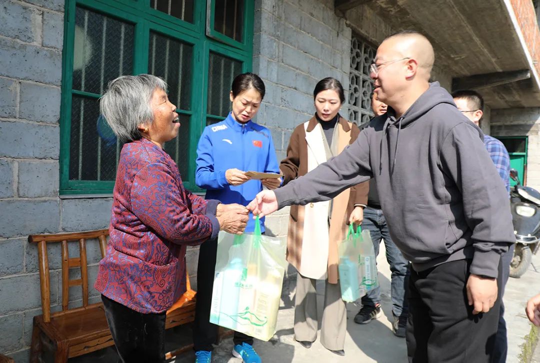 最难忘的是乡音,最难割舍的是乡情,最牵挂的是乡亲。胡国安董事长动情表示:企业小的时候是自己的,发展壮大了就是国家的、社会的。曾经的胡家村“七山一水两分田”,地处偏僻,交通不便,经济十分落后,基础设施陈旧,乡亲们找活路的途径就是田、就是地、就是山。在各级政府的指导和关怀下,在村民们的勤劳和奋斗下,如今的胡家村今非昔比,从全员脱贫迈向乡村振兴,村容村貌焕新颜,村民幸福指数攀升。此次与致公党互联网+专委会回到胡家村开展专项调研,旨在助力家乡幸福美丽乡村建设和黑茶、黄精种植等产业发展,为家乡的父老乡亲们做点实事。未来,他将继续高度关注和支持家乡的建设和发展,用实实在在的行动带动更多的爱心人士和企业参与到乡村振兴事业中来,为家乡乡村振兴建设贡献自己的一份力量。仪式过后,在胡家村村委干部的陪同下,致公党湖南省委会副主委、湖南省体育局局长罗双全,致公党湖南省委会互联网+专委会主任刘健与胡国安董事长一行走访了脱贫户家庭,为他们送去了慰问金、米粮和绿之韵健康产品。