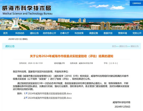 近日,威海市科学技术局公布了2024年威海市市级重点实验室验收(评估)结果,安然集团威海市植物干细胞生物技术重点实验室凭借优异的成绩,在全市范围内脱颖而出,荣膺前三甲,并获得优秀评价。