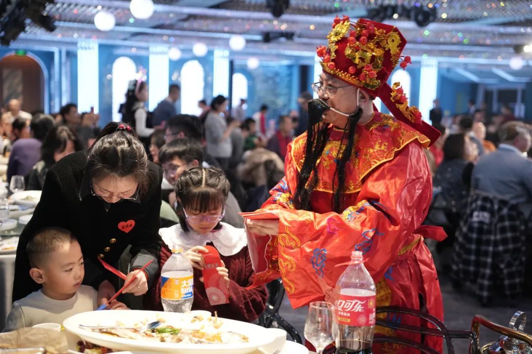 贯穿整个迎新年会的抽奖环节,将现场气氛一次次推向高潮。大家都怀揣着期待,当一个个幸运儿诞生时,欢呼声、尖叫声此起彼伏,所有人也在欢声笑语中感受着这份欢乐与刺激。现场还有可爱的财神爷出没,为大家送上红红的红包,寓意着新的一年财源广进,幸福安康。
