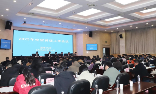 会议由湖南省贸促会党组成员、副会长罗专主持。会议传达了湖南省人民政府副省长曹志强对贸促工作的批示精神。曹志强在批示中指出,2024年,省贸促会深入贯彻落实习近平总书记“织密服务企业网、扩大国际朋友圈”的重要指示精神,积极联通政企、融通内外、畅通供需,为全省内陆地区改革开放高地建设作出了积极贡献。希望省贸促会在新的一年,充分发挥职能优势,再接再厉、担当作为,积极投身“七大攻坚”任务,为推进高水平对外开放贡献贸促力量。