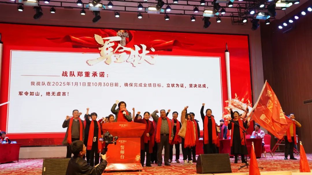 誓师赋的声音还在耳畔回响,热血沸腾的市场誓师活动正式开启。各战队队长迈着坚定步伐上台,郑重签下军令状,一笔一划间,承载着团队的荣耀与担当。