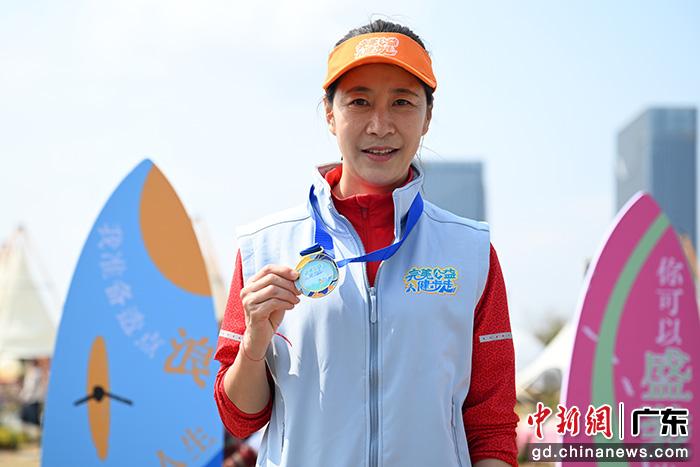 图为2000年悉尼奥运会竞走冠军王丽萍完成“完美公益健步走”并领取奖牌。中新社记者 陈楚红 摄