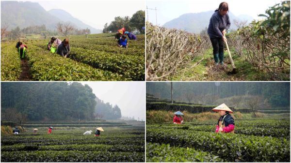 踏入茶园,一幅生机蓬勃的画卷在眼前缓缓铺展。茶树经过一冬的沉睡,已渐渐苏醒,开始萌动新芽。原本略显干枯的枝丫间,星星点点的新芽悄然冒头,宛如一个个活泼俏皮的小精灵,按捺不住内心的好奇,急切地想要探身而出,尽情感受春日的美好。茶农们在茶树间往来穿梭,修剪茶树、清理边沟、拔除杂草、翻耕松土、施肥浇水…… 各项工作有条不紊地进行,茶园里一片热火朝天的景象。