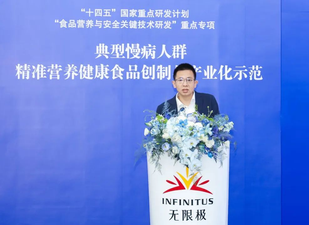 黄健龙先生代表项目牵头单位,在致辞中表示:“面向‘十四五’,我们期待与各方携手,以本次项目为起点,共同实现目标。在科技突破方面,我们将通过解析中草药多糖、小分子活性物质和功能性多肽的作用机制与功效,推动从经验传承到科学量化的跨越;在产业升级方面,我们将打造千吨级智能制造示范线,推动功能食品生产的绿色化、智能化,助力乡村振兴与健康产业高质量发展;在民生普惠方面,我们将开发适配不同慢病人群的健康食品,让‘因人而异’的调养方案惠及亿万家庭,用科技实力赢得消费者的信任。”