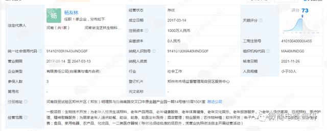 工商信息显示,河南省宝芝林生物科技有限公司成立于2017年3月14日,注册资本为1000万人民币,实缴资本0元,法定代表人为杨友林,经营范围包括一般项目:生物技术开发;为老年人提供生活照料、老年产品用品、老年健康服务、老年体育健身、老年文化娱乐、老年旅游服务;为老年人提供家政、日间照料、医疗护理、精神慰藉服务;为居家老年人提供助餐、助浴、助急、助医定制服务等。该公司董事长为杨振东,主要股东为河南宝芝林健康管理有限公司,占股51%,宇宙互联有限公司(注册于中国香港,曾用名POWER-ALL NETWORKS LIMITED),占股49%。最终受益人潘贵英通过河南宝芝林健康管理有限公司持有河南省宝芝林生物科技有限公司50%的股份。