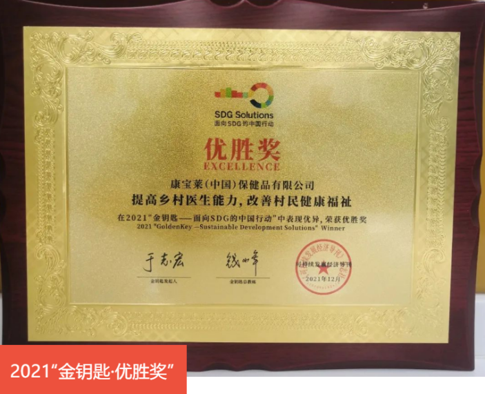 康宝莱,获行业优胜奖同样是在2021年年末,可持续发展经济周刊向康宝莱营养零饥饿——乡村医生公益项目颁发了金钥匙优胜奖。该奖项经过了公众网络投票,现场路演评审,行动视频专家投票等多个环节逐级筛选,最终康宝莱公益项目凭借在乡村振兴领域的突出表现,一举夺魁。