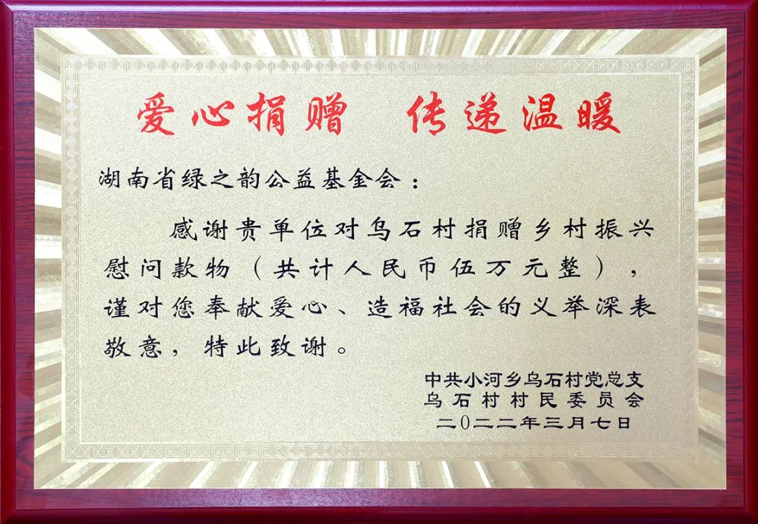 绿之韵向小河乡乌石村捐赠爱心款物5万元