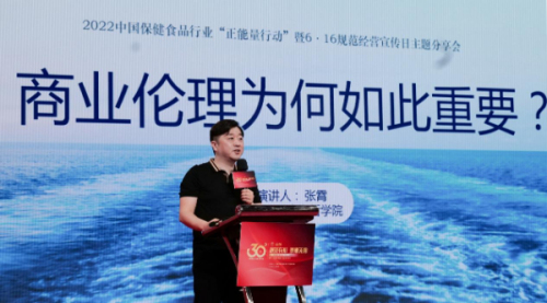活动同时还邀请了中国人民大学哲学院副院长张霄就“为什么商业伦理如此重要”这一话题进行了主题演讲。他表示,健食行业应该构建一种真正属于本行业的商业伦理。他认为,这一伦理应是中国传统养生文化与西方生物科技文化的一种结合,它的核心应是一套积极的生命哲学,既包含可以指导人们打开具有正能量的生活方式的内在动力,又能够使科技产品服务于人的健康。“当从业者和消费者都成为这种伦理的信奉者和践行者,健食行业就会有更加美好的未来。”