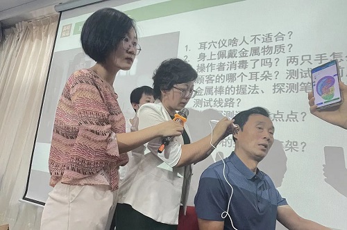本次活动邀请到总部研究院健康管理研发室陈超主任和拥有临床经验的马增威硕士现场教学。从新时优品健康服务设备知识点到中医穴位、经络知识再到扶阳罐痧像分析与解读,两位老师进行了精彩讲解,同时对健康服务设备耳穴仪、扶阳罐、泥灸的操作进行手把手指导。