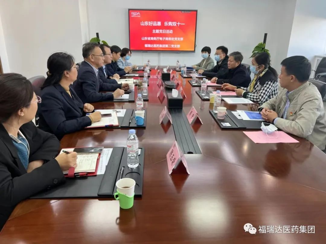 高鹏飞对山东省商务厅电子商务处党支部的到来表示热烈的欢迎,并对电子商务处长期以来对福瑞达医药集团的支持与帮助表示感谢。福瑞达副总经理高春明重点介绍了福瑞达电子商务平台的发展情况。双方围绕探索创新党建工作、促进党建业务融合发展以及目前电子商务平台发展存在的问题进行了交流探讨。