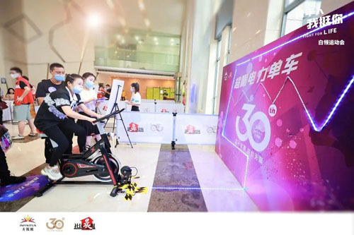 2022年9月,无限极上海志愿者走进CBD,针对年轻白领运动少,压力大的特点,以平板支撑、动感单车等年轻人喜闻乐见的方式,开展了“青年人 我挺你”的志愿活动。