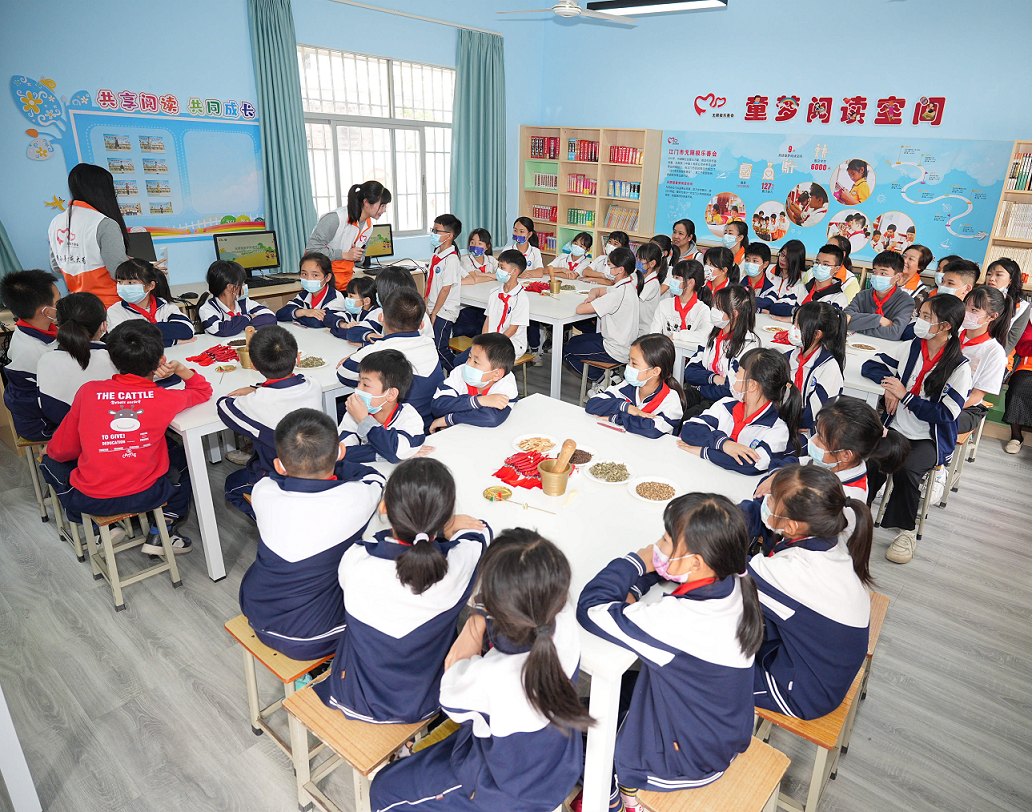 在竣工仪式上,无限极科普志愿者为三至六年级的学生代表带来了中草药科普小课堂,从中华文化礼仪到中医药文化瑰宝的讲解,穿插中草药香囊制作环节,带领同学们一同感受传统文化的魅力。