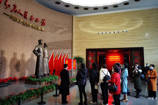 在讲解员的带领下,大家在党史馆内驻足参观。生动的影音画面、详实的文史资料记录着中国共产党为人民谋解放、谋幸福、谋复兴的初心使命和光辉历程。大家从中深切感受到了革命前辈视死如归、不怕牺牲的精神和崇高的爱国主义情怀。