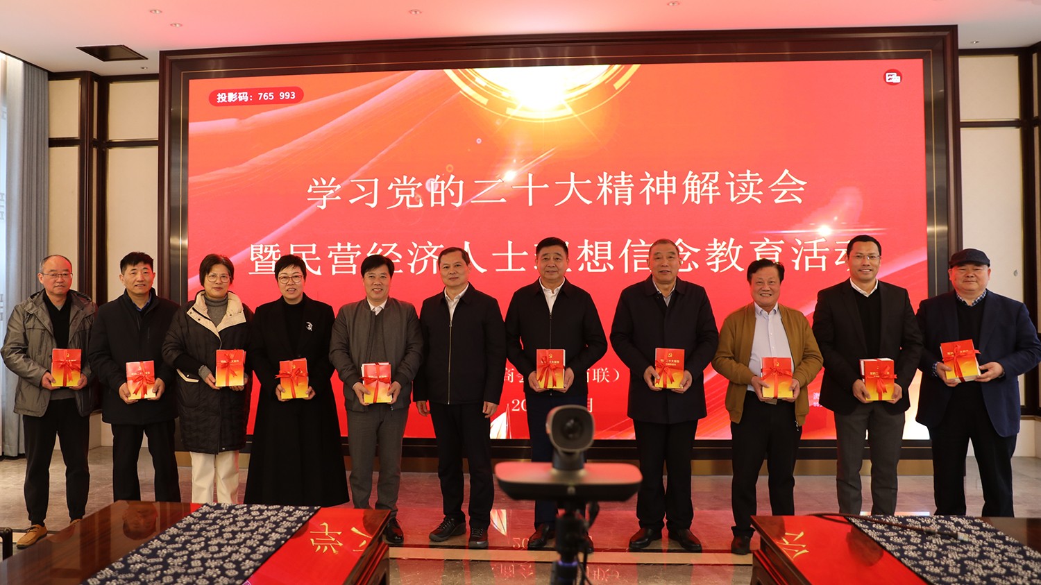 此次活动深入学习宣传贯彻党的二十大精神,进一步凝聚开发区民营经济人士思想共识,激发民营企业“敢闯敢干”新活力,奋力开辟民营经济“两个健康”发展新天地。区党工委委员、管委会副主任刘锋向全体与会代表赠送了《党的二十大报告学习辅导百问》《党的二十大报告辅导读本》等学习用书,向民营企业家发出读原文、悟原理的倡议。