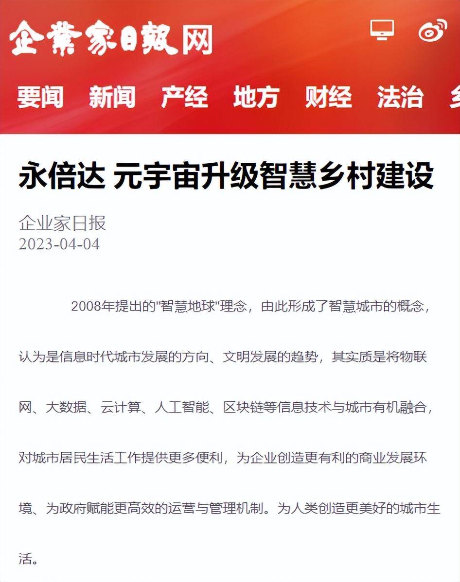 永倍达 元宇宙升级智慧乡村建设