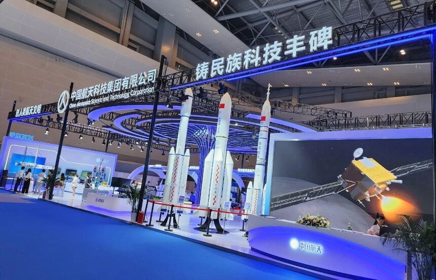 中国航天科技集团有限公司的展台在中央展厅里格外显眼,集团公司携90余项重点展品参展,覆盖卫星及应用、无人系统、高端装备、智能制造、新材料、氢能、空间生物等众多领域,成为全场展示的亮点之一。