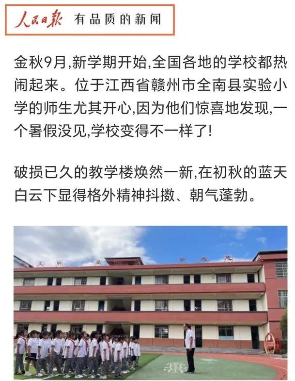 金秋9月,新学期开始,全国各地的学校都热闹起来。位于江西省赣州市全南县实验小学的师生尤其开心,因为他们惊喜地发现,一个暑假没见,学校变得不一样了!