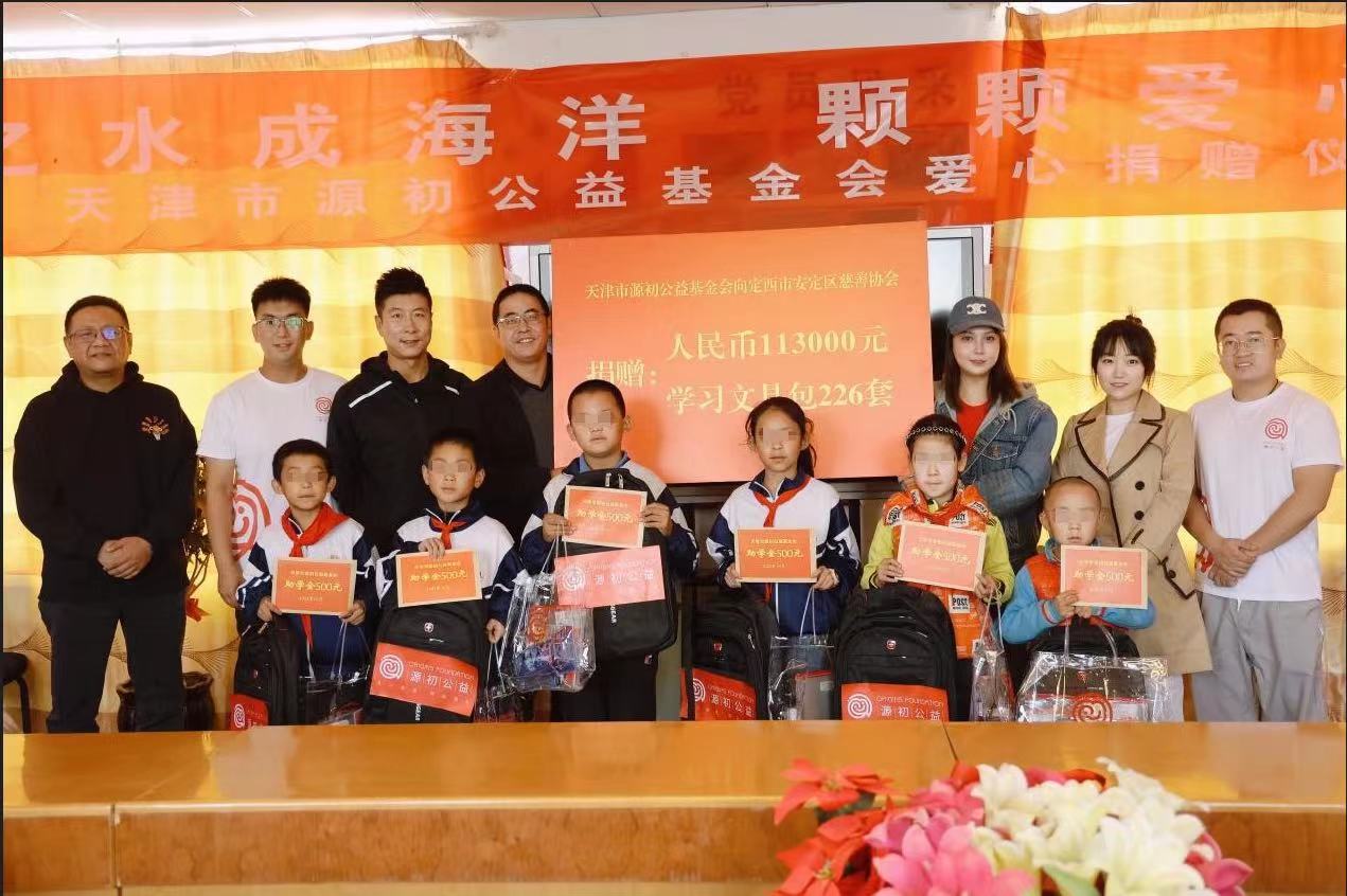 2023年10月10日,天津市源初公益基金会一行远赴甘肃省定西市进行爱心助学活动。