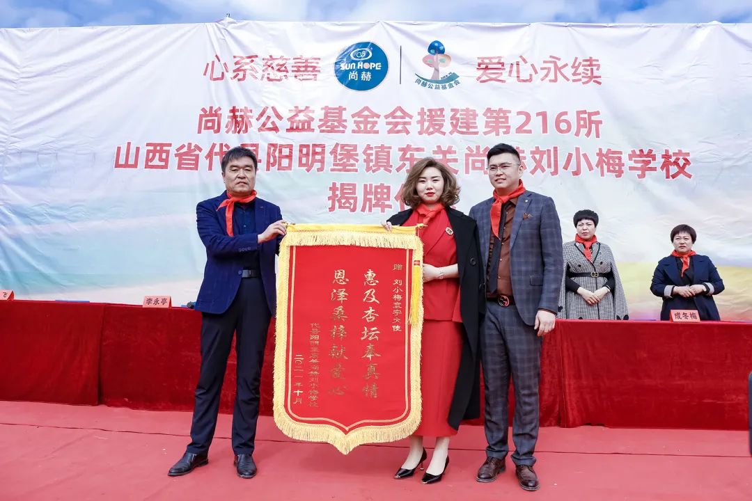 2021年10月12日,山西省忻州市代县阳明堡镇东关尚赫刘小梅学校举行揭牌仪式,这是尚赫公益基金会在全国范围内援建的第216所,山西省第9所公益学校。