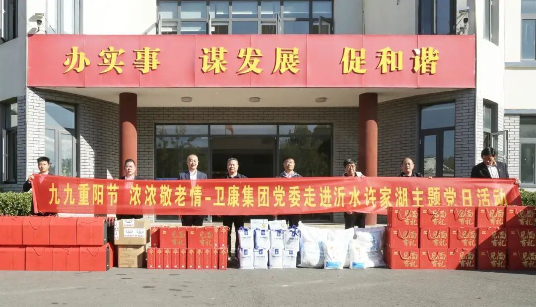 在重阳节来临之际,卫康生物集团党委书记王玉平、副书记杜广青与党委班子成员,在市广播电视台派驻沂水县许家湖镇驻村工作队队员郁有仁同志带领下,走进老党员的家,为他们提前送上了重阳节日的美好祝福。