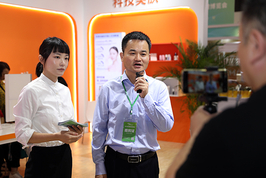 杨少华副总经理在直播采访中表示,此次博览会是新时优品第四次亮相大型展会,每一次参展都受到了广大参观者的热切关注与喜爱,充分体现了新时优品的独特魅力。从单一的健康产品到现在的以人为本的全面健康解决方案,公司的健康发展之路实现了持续的创新、升级、迭代、跨越。健康解决方案依托先进的健康管理监测设备和服务设备,结合中医“望闻问切”诊断原理及大数据、云计算、人工智能技术,能够给消费者提供更精准、更系统、更科学的健康管理服务,受到了消费者的认可与信赖。他希望大家紧抓新时优品特许加盟的发展良机与先机,加入新时优品创业之路,与公司一起,携手并肩,齐心协力,为消费者带去更优质的健康服务与产品。
