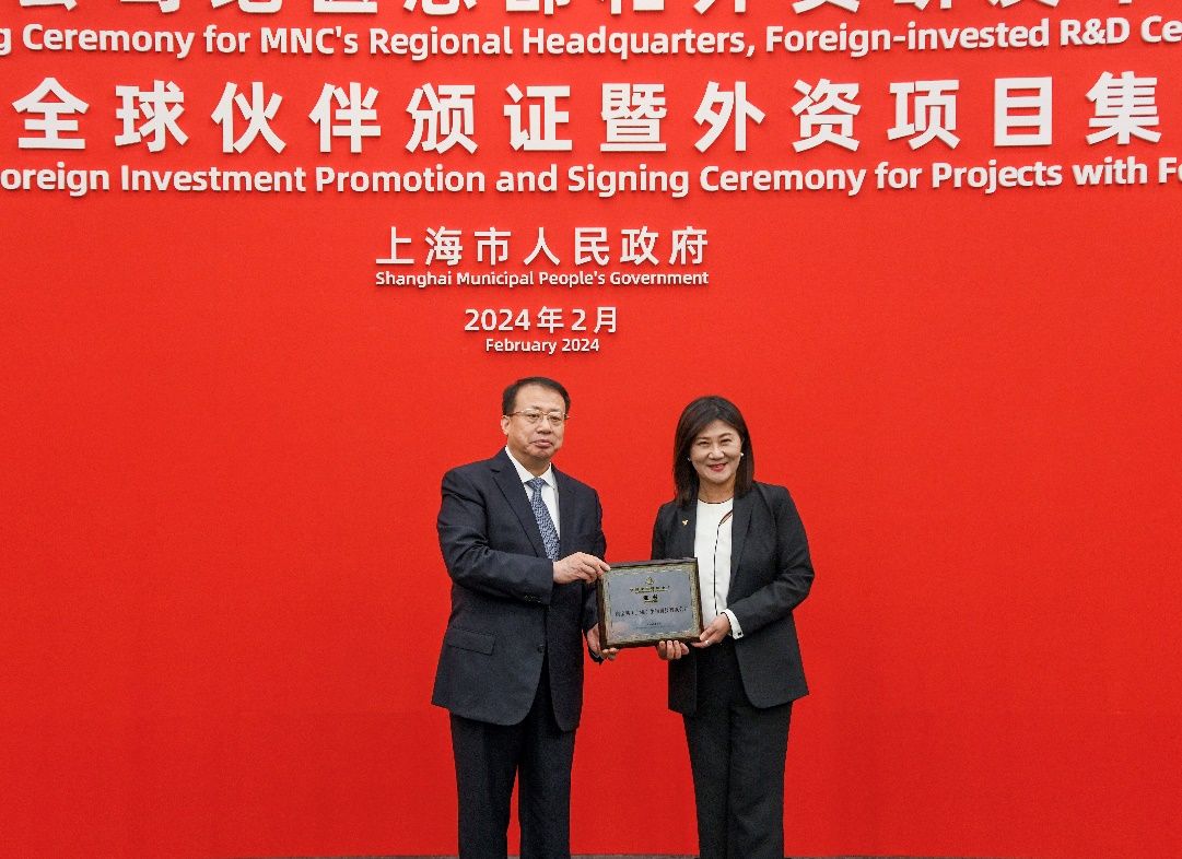 上海市市长龚正为康宝莱中国区总经理蔡孟红颁发证书