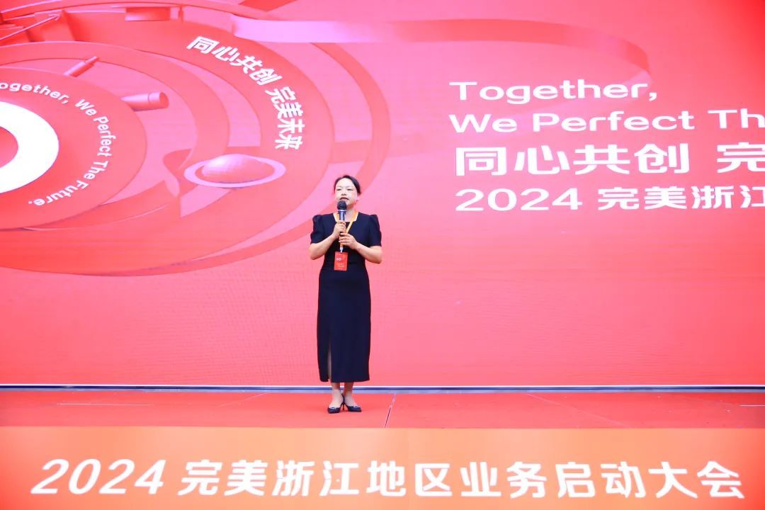 完美公司区域总经理、完美浙江/宁波分公司总经理吴仁钢为会议致辞。他对完美浙江2023年的业务进行了回顾,在过去的一年里,浙江完美人同舟共济,发挥“弄潮儿”的浙商精神,在数字化布局、社群化运营等方面积极转型。新的一年,完美浙江分公司也将在总公司的政策引导下,积极服务、深耕市场发展,为完美未来发展开创崭新局面。