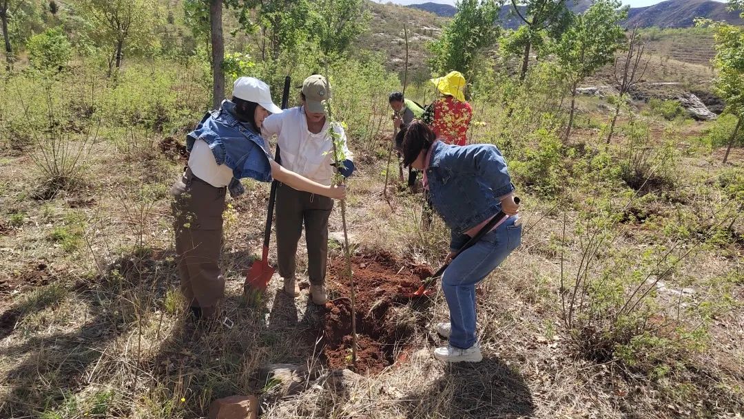 仪式后,参会的嘉宾领导们率先带头植树。现场一片祥和氛围,你扶苗、我铲土,大家一起播种希望,收获绿色。经过努力,一棵棵树苗屹立山岗,迎着春风绽放生机、绽放活力!