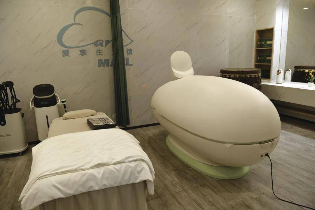 与保健品展示区紧挨着的便是泰济生国际健康管理体验店,像这样的体验店在全国范围内一共有300多家。本刊记者亲自体验了店内充满科技感的量子“太空舱”。协助体验的工作人员透露,疫情期间,很多设施暂时关停,但天狮集团没有拖欠过员工一分工资。正因如此,每个员工家庭都很感恩李金元。
