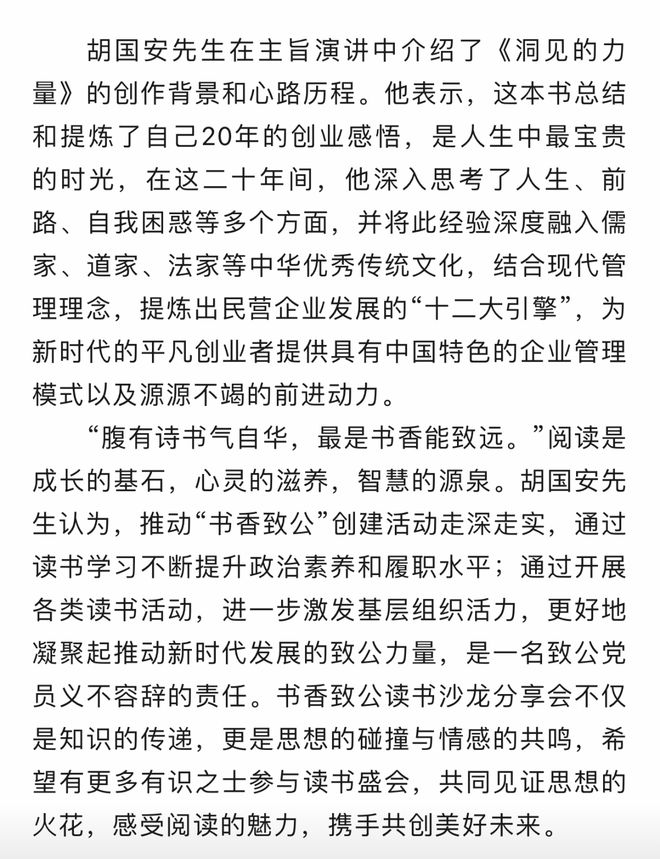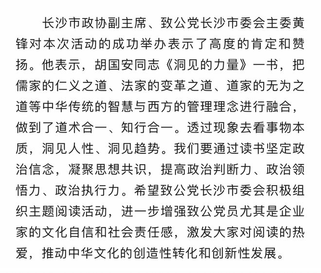 2024年7月19日,由长沙市政协、致公党长沙市委会联合指导,致公党长沙市委会书香致公读书会及“致多星”企业家服务平台主办,绿之韵集团、致公党长沙市委会开福区工委、雨花区工委、岳麓区工委、望城总支部、大泽湖海归小镇致公联合界别政协委员工作室共同协办的以“洞见力量·相遇美好”为主题的书香致公读书分享会暨“致多星”企业家服务平台第23期沙龙活动在长沙成功举办。
