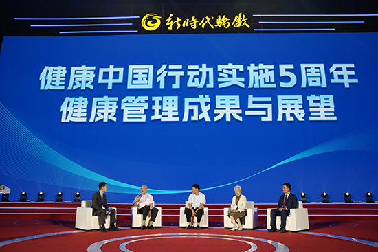 国家卫生健康委《健康中国观察》杂志首席记者李睿阳与中国人民解放军总医院营养科研究员、博士生导师,中央文明办、卫生部健康教育首席专家赵霖;全国医药技术市场协会家庭健康指导服务专业委员会主任委员胡辰生;北京市海淀区中央党校社区党支部书记王海凤;新时代健康产业集团副总经理杨少华分别从专家、协会、基层单位、企业等不同维度,就健康中国行动实施五周年以来的健康管理成果和对未来健康中国建设工作的思路与展望进行了深度交流。