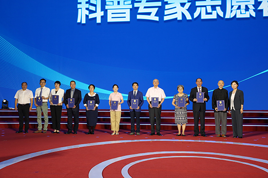 健康中国志愿服务总队队长王永进、副队长张红为健康中国志愿服务行动中为社区居民的健康知识普及和健康提升作出突出贡献的科普专家志愿者和基层社区代表颁发证书。