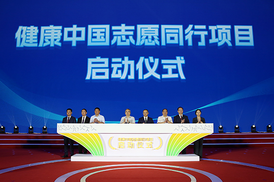中国医院协会常务副会长毛群安;中国节能环保集团有限公司党委常委、党委副书记刘大军;中华志愿者协会健康中国志愿服务总队队长王永进;全国医药技术市场协会家庭健康指导服务专业委员会主任委员胡辰生;中国新时代控股集团党委书记、董事长,新时代健康产业(集团)有限公司董事长冯玉珂;中国新时代控股集团党委副书记、总经理刘昱廷;中华志愿者协会健康中国志愿服务总队副队长,新时代健康产业(集团)有限公司党委书记、总经理张红;中华志愿者协会健康中国志愿服务实训基地负责人,新时代健康产业(集团)有限公司副总经理杨少华,共同启动健康中国志愿同行项目,为健康中国国家战略添砖加瓦。