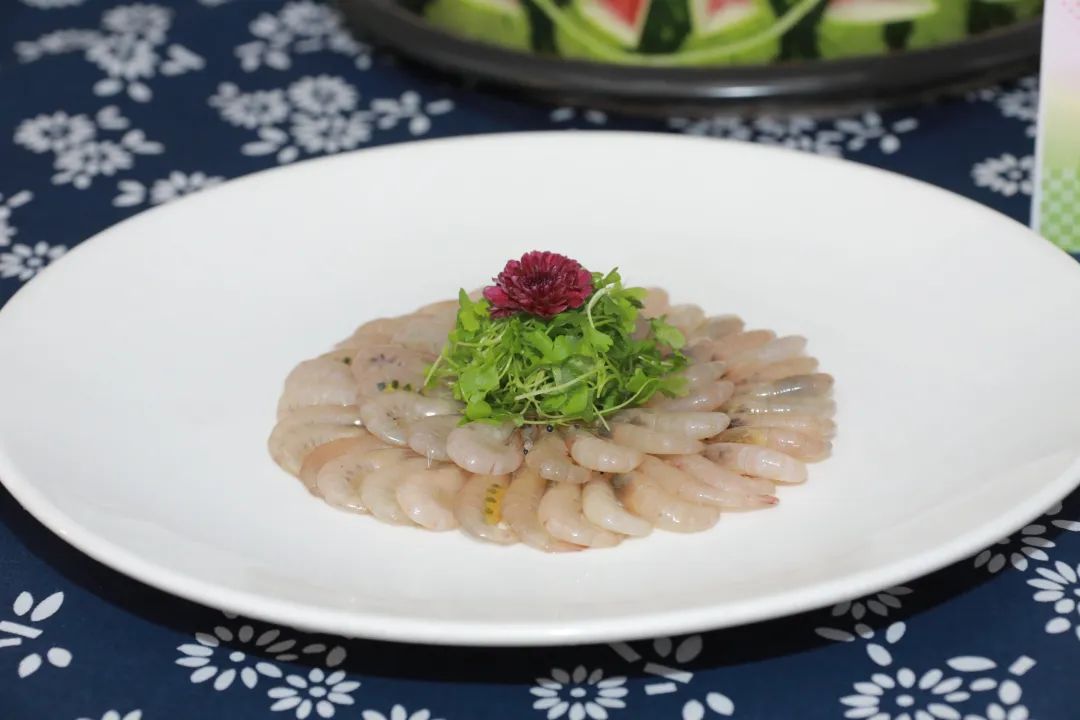 军山茶河虾是将南通军山茶饮、菌草与河虾的融合,虾体通红,肉质鲜嫩,芽叶清香,色泽雅丽,虾中有茶香,茶中有虾鲜,食后清口开胃,回味无穷。