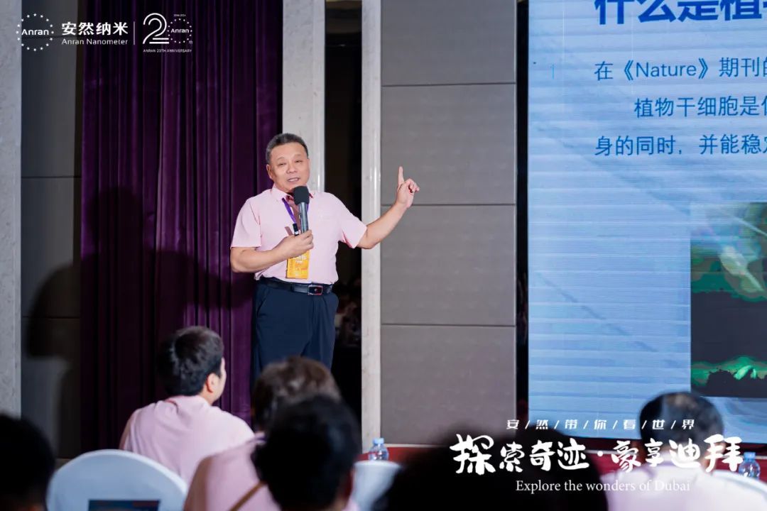 集团副总裁兼安然纳米技术顾问张明臣先生为大家带来《植物干细胞产业价值远景》,从世界发展趋势出发,向伙伴们分享目前安然植物干细胞技术取得的突破进展和未来广阔的发展前景。