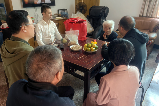 浙江联合流动党支部书记宁志君与市场党员代表来到老党员杨增锁、王整化同志住处,送上组织关怀和问候,以及精心准备的慰问品,了解他们的日常生活情况、身体健康状况及所思所想所盼。健康顾问为两位老同志提供健康监测服务,结合各自不同的健康状况,给予专业的健康调理方案,叮嘱他们保重身体,祝福他们健康长寿。两位老同志对组织的关怀和健康顾问专业贴心的服务表示衷心感谢,并期待来年重阳再相聚。