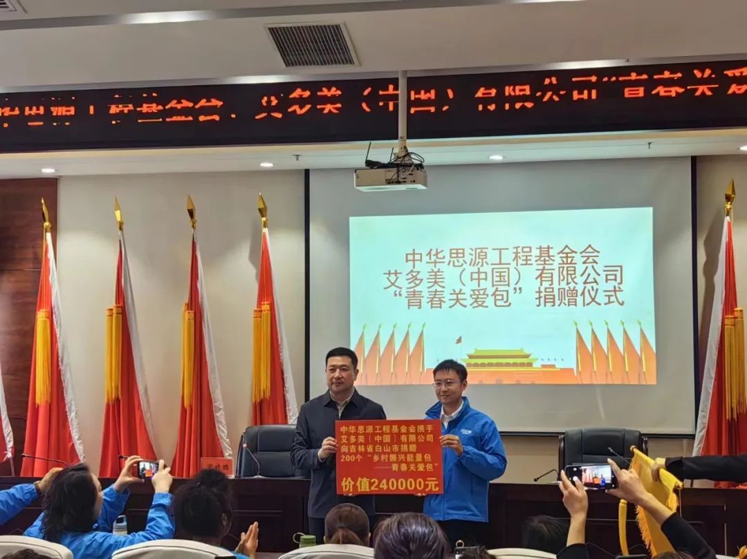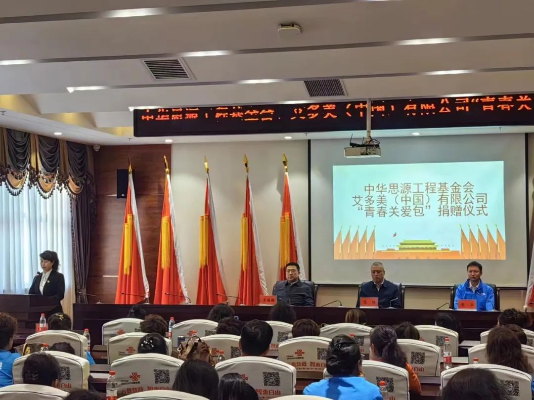 2024年10月10日,艾多美爱心志愿者来到校园。艾多美“卫艾守护”项目于吉林省白山市政务大厅会议室举办了捐赠仪式,东北区外事部经理黄山出席了捐赠仪式仪式,为全校女同学捐赠了青春关爱包。